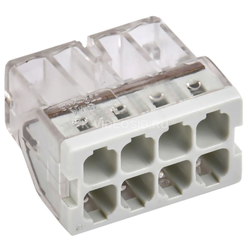 Строительно-монтажная клемма СМК 772-208 компактная IEK UKZ30-208-001. Количество подключаемых проводников – 8; место соединения – сбоку (поперечное); номинальное поперечное сечение – 2,5 мм²; цвет-серый; сечение одножильного жёсткого провода – 0,5...2,5 мм². Строительно-монтажная клемма серии 772 в прозрачном корпусе, без контактной пасты, предназначена для однократного подключения одножильных/ многожильных медных проводников.