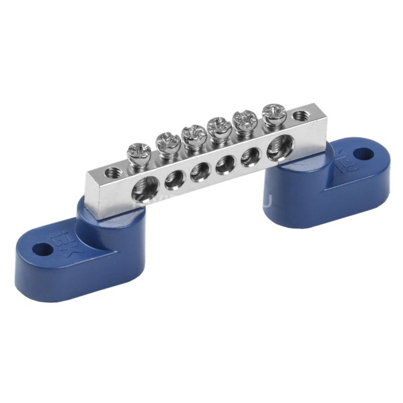 Шина N "ноль" на двух угловых изоляторах с никелевым покрытием ШНИ-6х9-6-У2-С IEK YNN10-06-C2-K07-N. Шины с изолятором типа ШНИ предназначены для электрического и механического соединения нулевых, защитных и фазных проводников. Конструктивно шины ШНИ выполнены из латунной шины, установленной на пластиковый изолятор или в изолятор, изготовленный из самозатухающего пластика. Нормальными условиями эксплуатации шин являютcя: - температура окружающей среды от –40 до +50 С; - среднее значение относительной влажности не более 90%. Шины с никелевым покрытием обладают более высокой коррозионной стойкостью материала и привлекательным внешним видом, что обеспечивает возможность их применения в средах с повышенной агрессивностью.