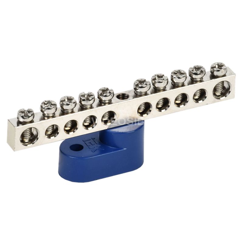 Номин ток In, А 100 Сечение шины 6х9 Материал Латунь Номин напряжение, В 400 Тип поверхности Никелированное покрытие Цвет изолятора Синий Модель или исполнение Прочее Количество кабельных выводов 10 Типоисполнение С 1-м угловым изолятором Макс поперечное сечение проводника, мм² 16/6 Высота, мм 26,3 Ширина, мм 29 Тип монтажа Винтовой, на монтажную панель Назначение шины N-ноль Температура эксплуатации, °C -40...50 Длина шины, мм 77
