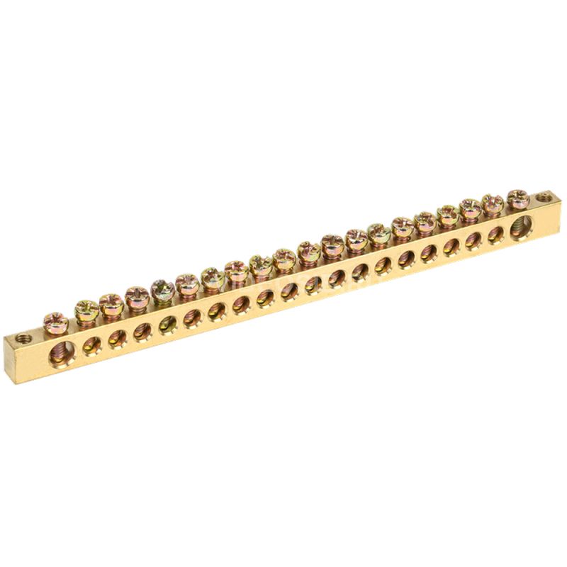 Шина PEN "земля-ноль" IEK YNN11-20-100 применяется в щитовом оборудовании для подсоединения нулевых рабочих (N) и нулевых защитных проводов (РЕ). Крепление шины предусмотрено по центру (типы 8/1; 14/1) и по краям (типы 8/2 и 14/2) через изолятор нулевой шины на 35 мм монтажную DIN-рейку и через угловые изоляторы нулевой шины, а также непосредственно на панель щита. При подключении к шинам медных многожильных проводов рекомендуется оконцевание их наконечниками-гильзами. Выполнены из латуни.