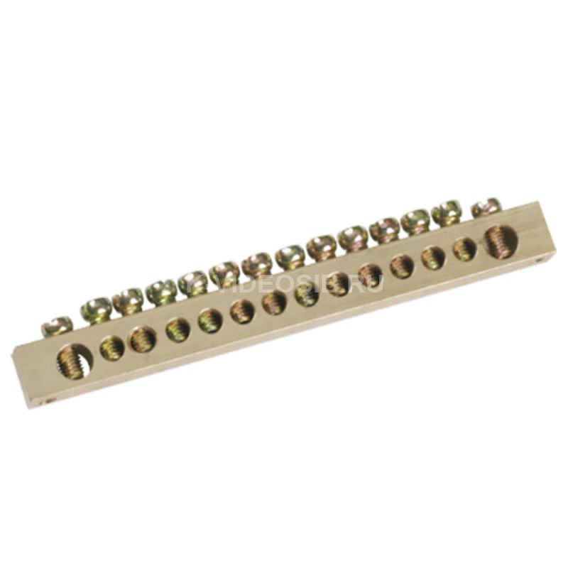 Шина PEN "земля-ноль" 8х12мм 8/2 (8 групп/крепеж по краям) ИЭК YNN21-08-100. Применяются в щитовом оборудовании для подсоединения нулевых рабочих (N) и нулевых защитных проводов (РЕ). Крепление шины предусмотрено по центру (типы 8/1; 14/1) и по краям (типы 8/2 и 14/2) через изолятор нулевой шины на 35 мм монтажную DIN-рейку и через угловые изоляторы нулевой шины, а также непосредственно на панель щита. При подключении к шинам медных многожильных проводов рекомендуется оконцевание их наконечниками-гильзами. Выполнены из латуни.