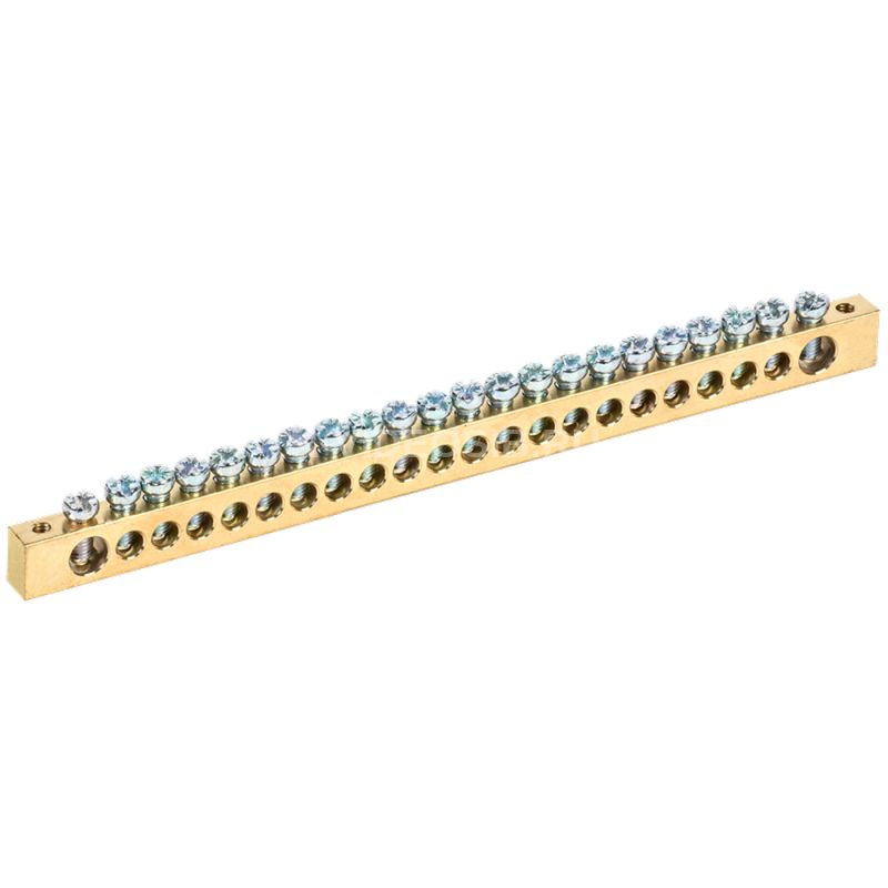 Шина PEN "земля-ноль" IEK YNN21-22-100 применяется в щитовом оборудовании для подсоединения нулевых рабочих (N) и нулевых защитных проводов (РЕ). Крепление шины предусмотрено по центру (типы 8/1; 14/1) и по краям (типы 8/2 и 14/2) через изолятор нулевой шины на 35 мм монтажную DIN-рейку и через угловые изоляторы нулевой шины, а также непосредственно на панель щита. При подключении к шинам медных многожильных проводов рекомендуется оконцевание их наконечниками-гильзами. Выполнены из латуни.