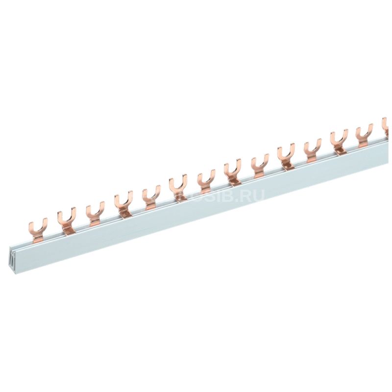 Шина соединительная типа FORK (вилка) 2Р 63А (1м) IEK YNS11-2-063. Применяются для удобного и безопасного соединения групп: ВА (выключатели автоматические), АД (автоматы дифференциальные), ВД (выключатели дифференциальные), ВН (выключатели нагрузки). Шины с шагом 18 мм предназначены для коммутации аппаратуры шириной, кратной одному модулю, шины с шагом 27 мм предназначены для коммутации изделий шириной, кратной полутора модулям. Шины, рассчитанные на номинальный ток 100 А, могут быть использованы с номинальным током 125 А, если вводной автомат подключать по центру. Для полуторамодульных шин имеются боковые заглушки.