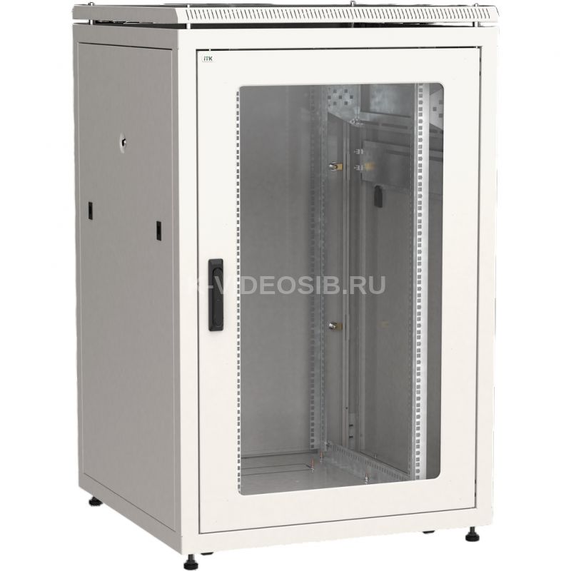 ITK LINEA N Шкаф сетевой 19" 24U 800х800мм стеклянная передняя дверь задняя металлическая серый.