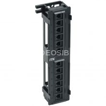 Патч-панели для монтажа в 19" шкаф или стойку соответствуют стандарту 19" (482,6 мм), имеют отверстия с левой и правой стороны для крепления на профиль. На передней стороне все патч-панели ITK имеют специальную площадку для дополнительной маркировки и цифровую нумерацию портов, на обратной стороне модули IDC имеют цветовую и цифровую нумерацию. Также для облегчения монтажа и укладки кабелей имеются изделия с кабельным органайзером спереди или сзади.