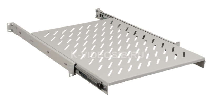 Выдвижные полки крепятся на фронтальные и на задние профили, имеют перфорированную поверхность для обеспечения лучшего охлаждения и отведения теплых воздушных потоков, а за счёт наличия специальных телескопических салазок способны плавно выдвигаться вперед за пределы рабочей плоскости, образованной передней парой 19'' профилей. Данные полки рассчитаны на оборудование, требующее регулярного обслуживания и извлечения из шкафа, но с небольшой общей массой, чтобы избежать его опрокидывание и возможной поломки выдвижного механизма полки.