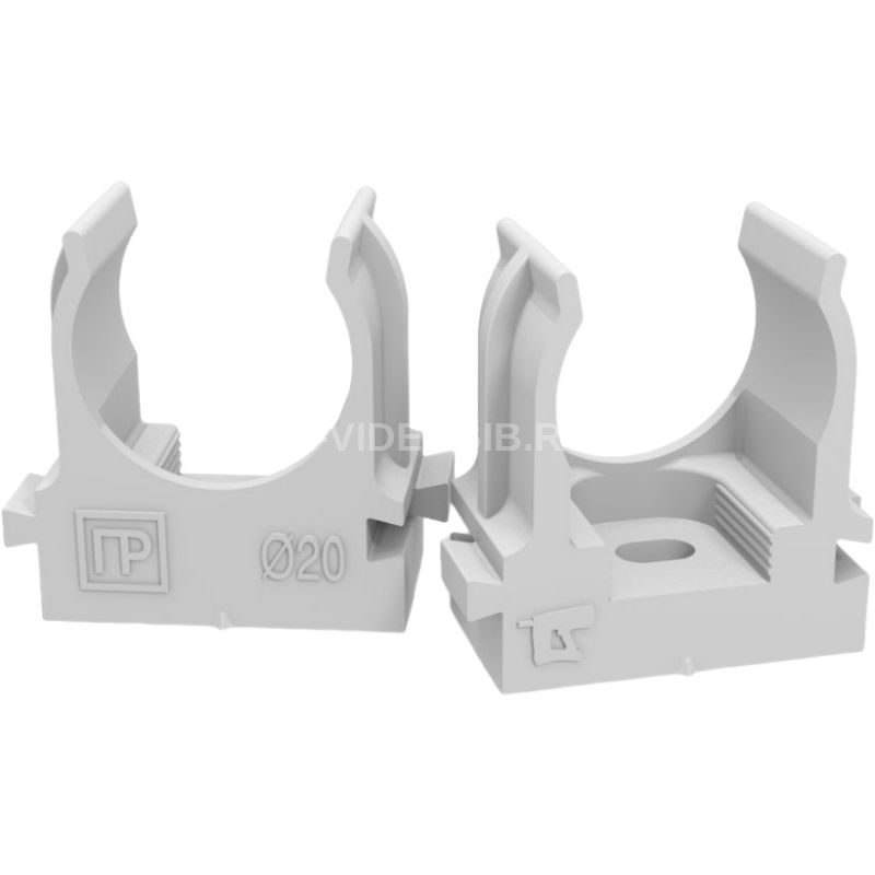 Описание Крепеж-клипса для труб атмосферостойкая для прямого монтажа серая в п/э d20 мм (100шт/1100шт уп/кор) Промрукав PR13.0402
