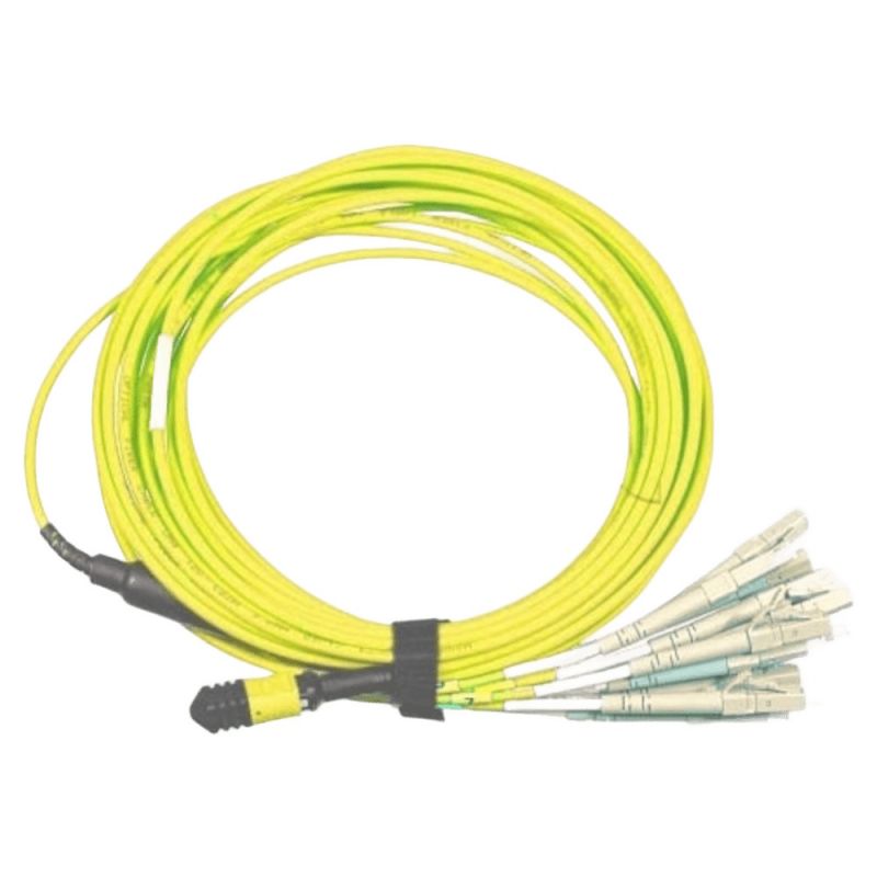 Кабельная сборка состоит из 12-ти оптических волокон в LSZH оболочке, оконцованных с одной стороны 12-волоконным разъемам МРО и 12-ю симплексными разъемами LC с другой.