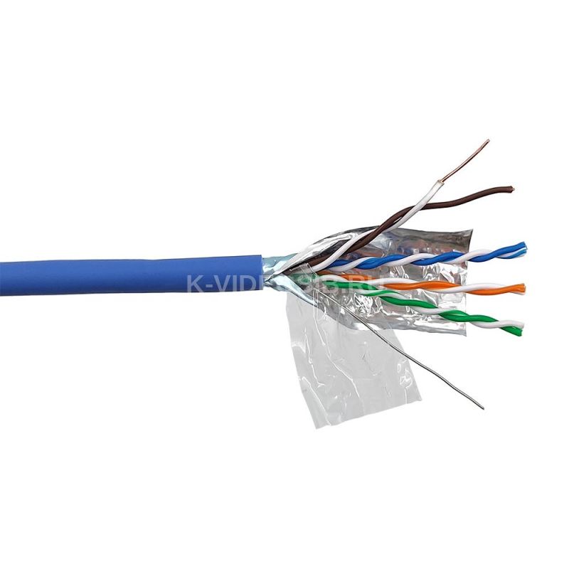 Два проводника, скрученных со специально подобранным шагом, составляют одну витую пару. 4 витых пары обернуты полиэтиленовой пленкой и вместе с медным одножильным заземляющим проводником заключены в общий экран из фольги и оболочку из LSZH (низкодымящая, не содержит галогенов).
