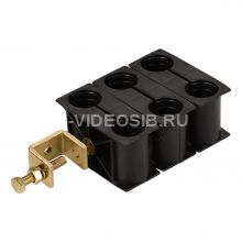 Элемент предназначен для фиксации коаксиальных кабелей к различным конструкциям при помощи струбцины. Выпускается в нескольких вариантах, поддерживает до 6 кабельных линий различного диаметра.