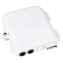 Пластиковые боксы предназначены для монтажа оптических линий связи при построении сетей FTTX и PON внутри и снаружи помещений. Данная модель может быть использована в качестве оптического кросса либо муфты емкостью до 8 волокон. Бокс имеет 8 мест для установки оптических проходных адаптеров типа SC, кассету для укладки волокон и защитных гильз общей емкостью 8 волокон Бокс имеет 2 ввода для магистральных кабелей и 9 вводов для drop кабелей. Вводы кабелей оснащены резиновыми уплотнителями. Ввод магистрального кабеля оснащен крепежом центрального силового элемента и прижимной скобой. Крышка бокса имеет резиновый уплотнитель, обеспечивающий герметичность кросса. Для удобства монтажа крышка может быть временно снята с корпуса. Конструкция крепления позволяет размещать бокс на столбах, стенах.