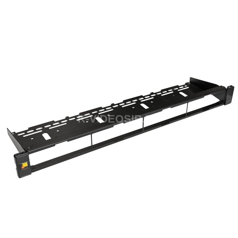 Патч-панель высотой 1U имеет 4 слота под установку специальных лицевых вставок или кассетных модулей (см. совместимые товары). Модульная панель удобна при монтаже, а также позволяет увеличить скорость работы. Лицевые вставки и кассеты легко фиксируются в отверстиях при помощи защелок.