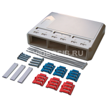 Настенная коробка под три модульные вставки может применяться для создания оптической телекоммуникационной розетки, или розетки комбинированного назначения.