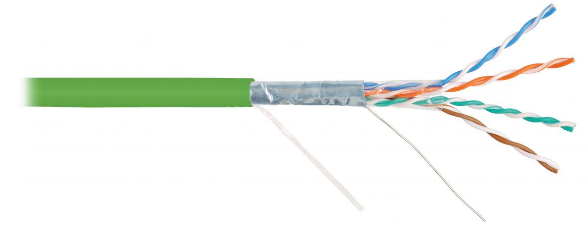 Кабель NMC выполнен 1201С-LG в экранированном исполнении F/UTP, соответствует категории 5e и предназначен для внутренней прокладки. Внешняя оболочка выполнена из не распространяющего горение при групповой прокладке и не выделяющего коррозионно-активных газообразных продуктов при горении и тлении, полимерного материала в исполнении нг(A)-HF.