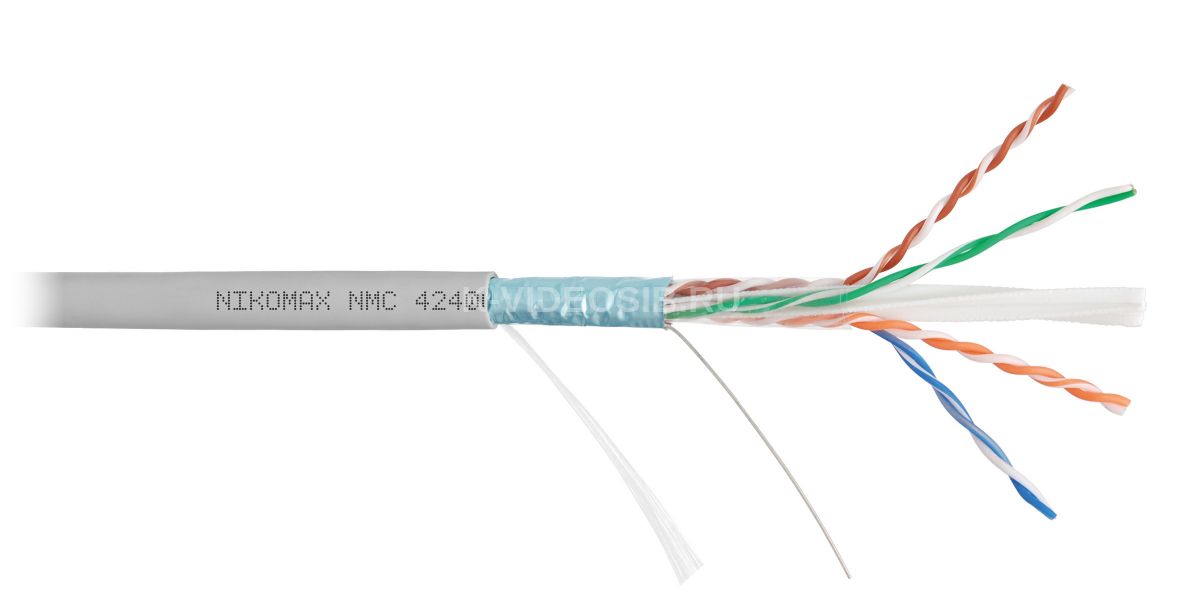 Кабель NMC 4240C-xx выполнен в экранированном исполнении F/UTP, соответствует категории 6 и предназначен для внутренней прокладки. Внешняя оболочка изготавливается из не распространяющего горение при групповой прокладке и не выделяющего коррозионно-активных газообразных продуктов при горении и тлении полимерного материала в исполнении нг(A)-HF