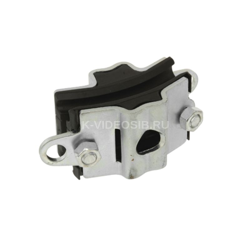 Поддерживающий зажим состоит из двух зажимных щек из ультрафиолетостойкого термопластика, усиленных двумя стальными оцинкованными пластинами. Дугообразные канавки позволяют использовать зажим на промежуточных столбах с углом поворота трассы кабеля до 25 градусов.