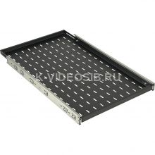 Полка выполнена из металла 1,5 мм, имеет телескопические направляющие, обеспечивающие плавное выдвижение. Монтажные кронштейны фиксируют полку к вертикальным направляющим шкафов и стоек в четырех местах. Глубина монтажных кронштейнов регулируется, что позволяет устанавливать полку на необходимую глубину. Распределительная нагрузка на полку составляет 30 кг.