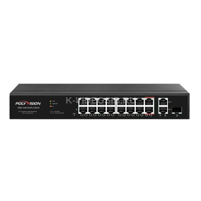 18-портовый неуправляемый PoE-коммутатор. 16 портов 10/100 Мбит/с PoE (15-16 порт с поддержкой HiPoE_60W);. 2 порта: 10/100/1000 Мбит/с. 1 gigabit SFP порт, до 30 Вт на порт. Бюджет PoE: 150Вт. Дальность передачи питания: до 250м. Пропускная способность: 7,2 Гбит/с. 4 режима работы: AI VLAN, AI Extend, AI PoE, AI QOS.