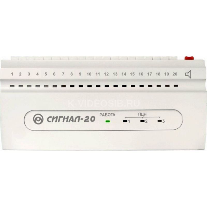 Прибор обеспечивает dозможность включения в шлейф сигнализации токопотребляющих охранных и пожарных извещателей типа "Окно", Фотон-8", "Волна-5", "ДИП-3", "ДИП-6", "ДИП-6У". Так же реализована возможность автономной охраны с выдачей сигналов на выносной световой оповещатель постоянного тока, выносной звуковой оповещатель постоянного тока, на встроенные световые индикаторы, отображающие состояние двадцати ШС, и на встроенный звуковой сигнализатор. Сигнал-20 обладает полной работоспособностью в дежурном режиме, в режиме "Тревога", в режиме "Диагностика". Устройоство позволяетустановить параметры конфигурации каждого ШС. Повышенная помехоустойчивость за счет селекции входного сигнала по длительности и фильтрации наводок 50 Гц, а так же повышенная защищенность шлейфов от саботажа.