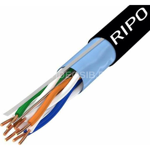 Витая пара FTP4CAT5E 24AWG CCA outdoor бренда RIPO продается в бухте 305 м (4 пары). Представляет собой 8-жильный скрученный попарно провод.