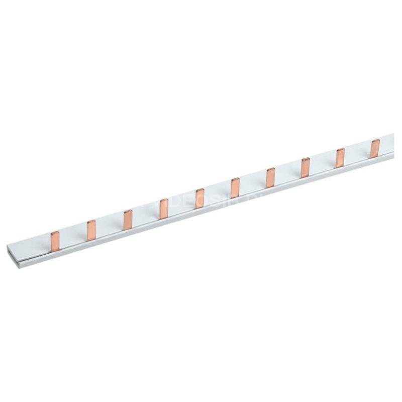 Шина соединительная типа PIN штырь 1Р 63А 1 м REXANT 11-2241. Соединительная однополюсная шина типа PIN служит для безопасного и комфортного присоединения таких приборов, как автоматические выключатели, выключатели нагрузки, дифференциальные автоматы и т.д. Шина выполнена из высококачественных медных пластин, помещенных в корпус из диэлектрического материала, не поддерживающего горение. Это обеспечивает дополнительный уровень безопасности и предотвращает возможное возгорание в случае короткого замыкания или перегрузки.