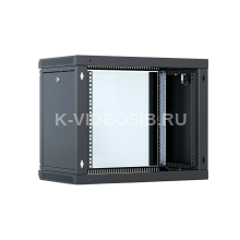Телекоммуникационный шкаф ШТ-НСрМ-6U-600-550-С-Ч. Настенный монтаж, съёмные боковые стенки, монтажная ширина 19", высота 6U. Дверь стеклянная, цвет чёрный.