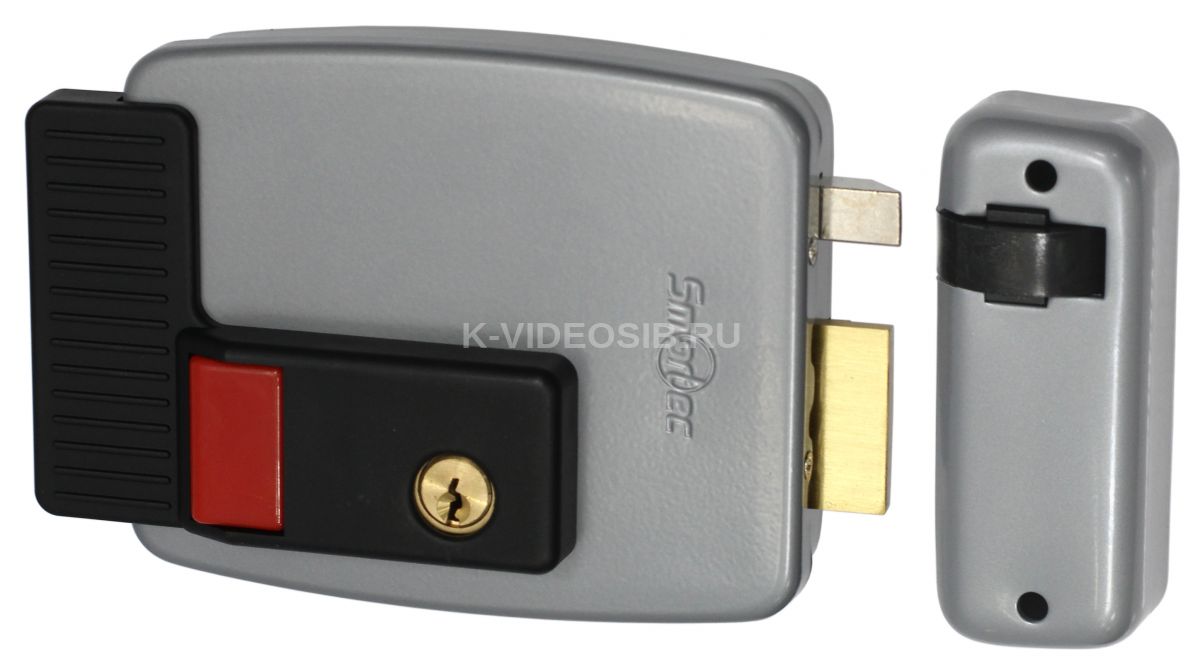 Электромеханический накладной замок Smartec ST-RL074DIL-GR, НЗ, левая дверь, цилинр снаружи и изнутри, кнопка изнутри(блокировка кнопки), питание 12VDC/3.3А,-45°+50°С, окрашенная сталь.