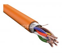 Жилы: однопроволочные медные жилы Сечение: 0,75 мм2 Изоляция: огнестойкая кремнийорганическая резина Скрутка: попарно Экран: ламинированная алюминиевая фольга с контактным проводником из медной луженой проволоки Оболочка: безгалогенная полимерная композиция повышенной масло- и бензостойкости Цвета изолированных жил: красный-черный, синий-желтый, белый, коричневый; фиолетовый, зеленый Число пар в кабеле: 4 Оболочка оранжевого цвета
