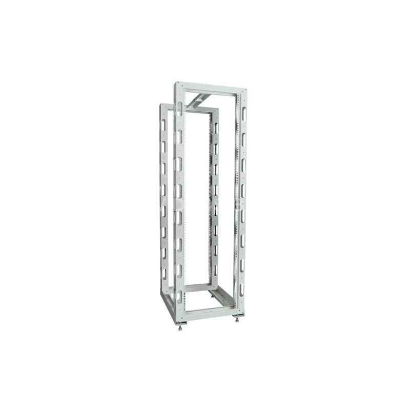 Имеет полностью разборную двухрамную конструкцию. Для удобства монтажа и коммутации оборудования предусмотрена перфорация по всей длине рамы, широкий спектр аксессуаров. Возможна регулировка полезной глубины – 750 мм, 650 мм, 550 мм, 450 мм. Устанавливается на регулируемые винтовые опоры (ножки), компенсирующие неровности пола, или ролики. Высота стойки 24U.