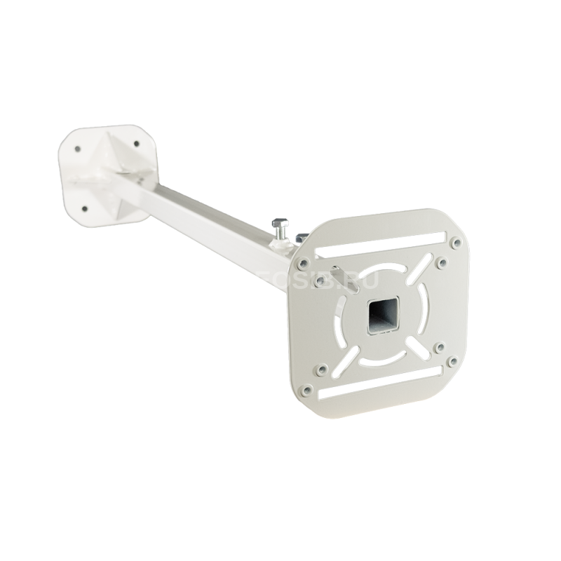 Подходят для установки камер как с использованием монтажных коробок TSi-JB, так и без их использования. Кронштейн имеет четыре крепежные отверстия. Кабель протягивается через технологические отверстия, расположенные в центре монтажной площадки. На лицевой монтажной площадке имеются резьбовые крепления для монтажных коробок. Кронштейн регулируется по вылету от 700 до 1300 мм и фиксируется двумя болтами. Для уменьшения колебаний от потоков воздуха на выдвижной части находится гайка для крепления троса и его последующей натяжки.