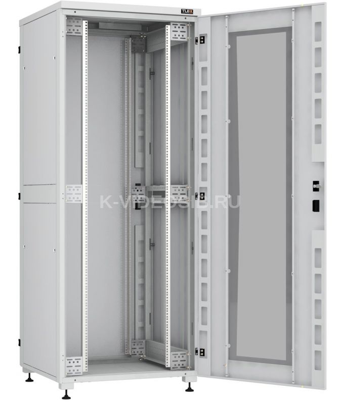 Напольный шкаф 19", 42U, стеклянная дверь, цельнометаллические двухуровневые стенки и задняя дверь, 2042х800х1000мм, полезная глубина 950мм, в разобранном виде, серый. RAL7035.