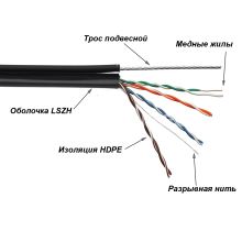 Кабель с тросом предназначен для подвеса на воздушных линиях связи.