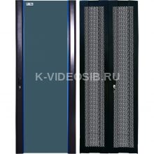 Комбинированный комплект дверей для шкафов TWT серии Business, состоящий из одностворчатой стеклянной двери и двухстворчатой распашной перфорированной двери с перфорацией. Любая дверь может использоваться в качестве передней или задней, крепление двери на шкаф позволяет монтировать двери для открывания как на правую, так и на левую сторону.