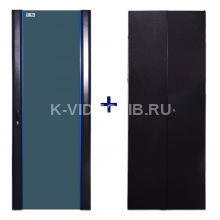 Дверь №1 Стеклянная дверь – стекло закаленное тонированное (31%), отделка – пластиковая раскладка синего цвета, замок язычковый, поворотная ручка, 2 ключа и нижняя опорная ось в комплекте, две точки подключения защитного заземления..