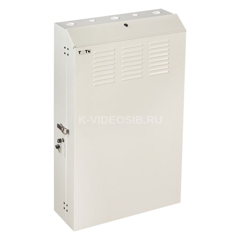 В нижней панели шкафа располагаются отверстия под вентиляцию, которые предусматривают возможность установки вентиляторов TWT-CBW-FAN1-BB (поставляются отдельно). Вверху двери шкафа располагаются вентиляционные отверстия.