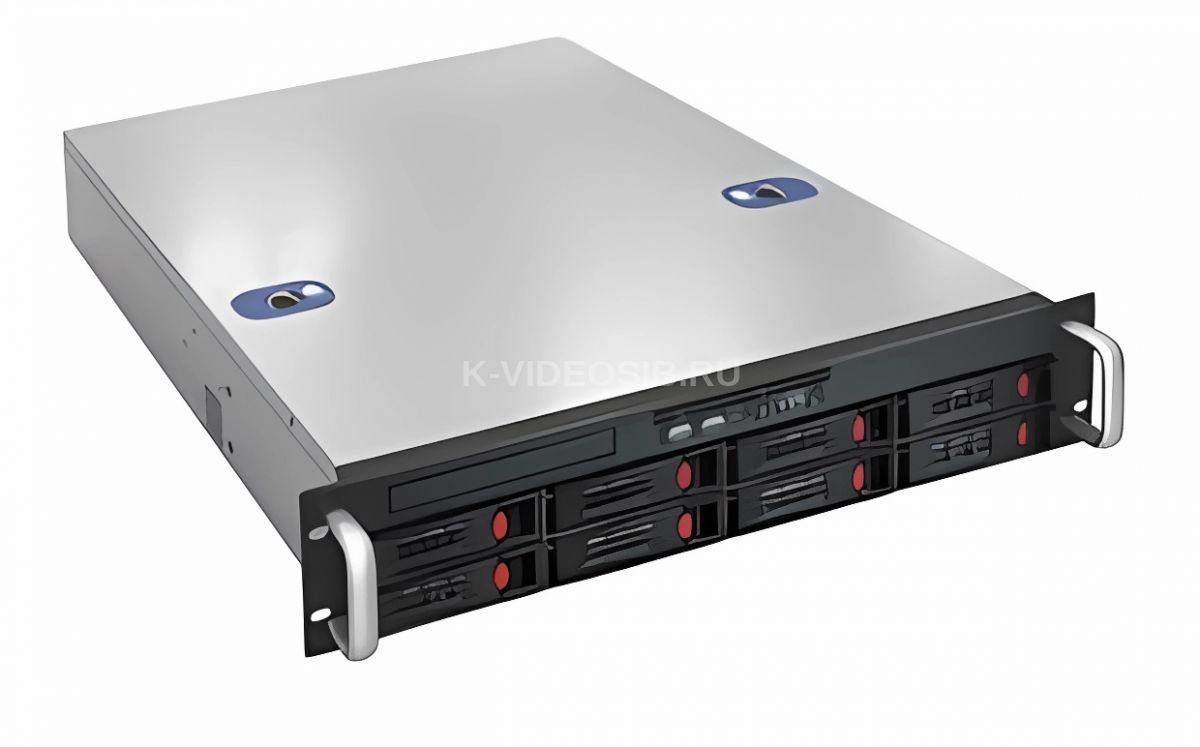 В комплект поставки входят рельсы для монтажа в 19" стойку, что упрощает установку. Размеры шасси составляют 550 × 429 × 89 мм, а размеры с ручками и ушками – 585 × 481 × 89 мм, что делает сервер компактным и удобным для размещения в серверных помещениях.