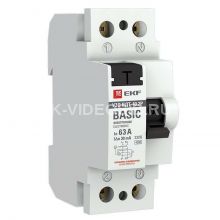 Выключатель дифференциального тока (УЗО) 2п 63А 30мА тип AC Basic электрон.EKF elcb-2-63-30e-sim