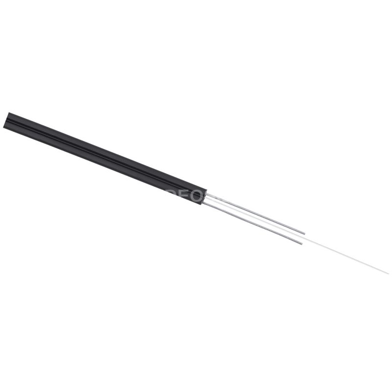 Абонентский кабель для сетей FTTH (Drop-кабель) используется для внешней и внутренней прокладки при построении абонентских сетей. Имеет малые габариты и гибкую конструкцию. Два силовых элемента из стеклопрутков защищают от механических воздействий. Такая конструкция drop-кабеля позволяет легко получить доступ к оптическим волокнам в процессе монтажа линии. В drop-кабеле используется специальное оптическое волокно стандарта G.657A1 характеризующееся низкими потерями при малых радиусах изгиба кабеля. Оболочка кабеля из полимера, не распространяющего горение, не содержащего галогенов с низким дымовыделением, стойкого к УФ излучению. Цвет оболочки кабеля – черный.
