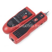 Типы тестируемых кабелей: Витая пара с разъемами RJ45 на концах Тип кабелей для трассировки: Витая пара с разъемом RJ45, Витая пара/телефонный провод с разъемом RJ11 (6р), Любой кабель или провод Блок излучателя: Порт RJ11 (6р), Порт RJ45 (8p8c), Кнопка изменения тональности генератора, Кнопка включения и выбора режима работы прибора Блок приемника: Порт RJ45 (8p8c), Кнопка подсветки, Регулировка громкости, Гнездо для наушников, Кнопка включения генератора Комплект поставки: Блок излучателя - 1 шт, Блок приемника – 1 шт, Кабель RJ45-RJ45 -1 шт, Кабель RJ11-RJ11 – 1 шт, Кабель RJ11-2 крокодила – 1 шт, Наушники - 1 шт, Батарейка 9V "Крона" - 2 шт, Сумка-чехол