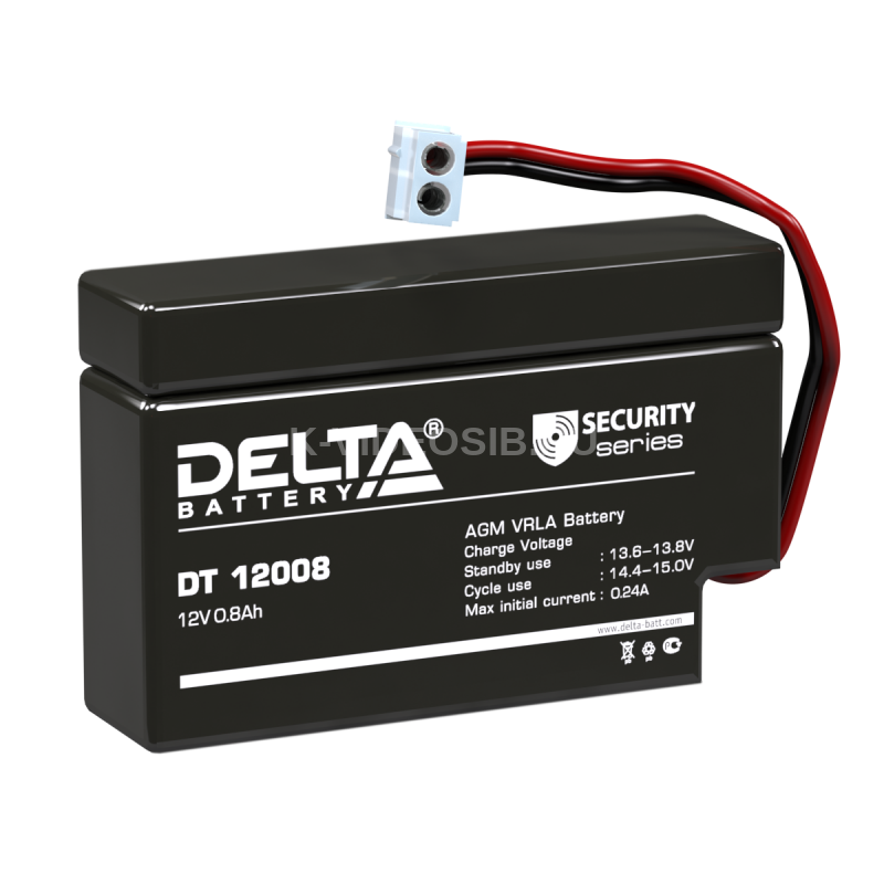 Герметизированный VRLA свинцово-кислотный аккумулятор Delta DT 12008 серии DT специально разработан для эксплуатации в слаботочных системах. Изготавливаются по технологии AGM (электролит, абсорбированный в стекловолоконном сепараторе). Номинальное напряжение составляет 12 В 0.8 Ач. Тип клемм T9.