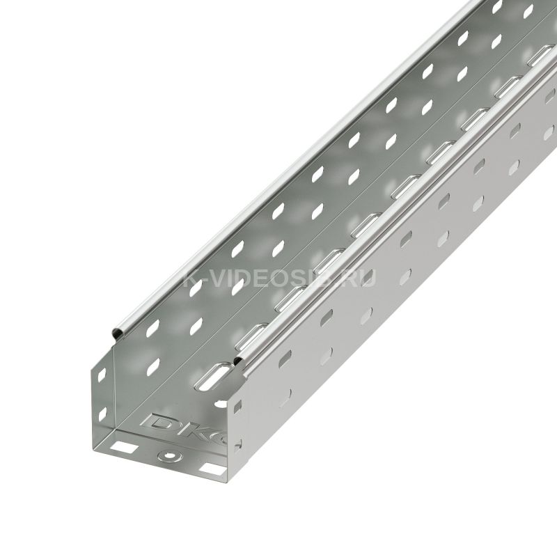 Перфорированные листовые лотки ДКС применяются для прокладки кабеля как в помещении, так и на открытом воздухе. Лотки отличаются высокой несущей способностью – подформовка, производимая при производстве этой продукции, создает дополнительное ребро жесткости, что увеличивает несущую способность системы до 54%. Перфорация сокращает вес конструкции. В лотках имеются отверстия для отвода кабеля. Степень пыле- и влагозащиты перфорированных лотков – IP 10 при использовании крышек, входящих в состав системы. Метод соединения "мама-папа" применяемый для системы, существенно сокращает время монтажа и создает непрерывный контур. Конструктив листовых лотков ДКС предупреждает повреждение кабеля при прокладке. Высота лотка – 100 мм, ширина – 100 мм, длина – 3000 мм, толщина - 0,7 мм. Перфорированные лотки в исполнении "Цинк-ламель" имеют специальное покрытие, устойчивое к коррозии из химически активной магниевой смолы с добавлением хлопьев цинка и алюминия. Цинк-ламельное покрытие изделий ДКС по коррозионной устойчивости аналогично покрытию "Горячий цинк". Оно обеспечивает электрохимическую и барьерную защиту от коррозии.