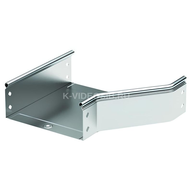 Элементы, входящие в состав системы "S5 Combitech" позволяют предусмотреть любые особенности проектирования и монтажа трассы. При построении кабельных трасс может возникать ситуация, когда требуется увеличить или уменьшить ширину лотка. Для этого применяется переходник (редукция) – аксессуар, имеющий разную ширину в начале и в конце. Правосторонняя редукция – аксессуар, который расширяется с правой стороны. Такой конструктив позволяет размещать переходник вплотную к стене. Ширина его составляет 100 мм в узкой части и 150 мм – в широкой. Максимальная степень пыле- и влагозащиты – IP 44 (при использовании вместе с крышкой). Высота - 50 мм. Исполнение – "сталь, оцинкованная по методу Сендзимира". В состав комплектного аксессуара входят необходимые крепежные элементы и соединительные пластины.