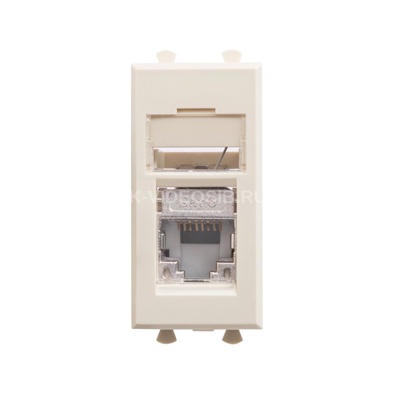 Компьютерная розетка RJ-45 модульная. Категория: 6, экранированная. Предназначена для монтажа в систему кабельных коробов "In-liner Front" и систему организации рабочих мест "Sotto" при помощи рамок-суппортов и каркасов "Avanti" (код 4400912 и т.д.). Используется для подключения сетевого кабеля к рабочему месту. Характеристики: 8P8C. С пылезащитной шторкой, с маркировочной табличкой. В комплекте разъем Keystone. Заделка не требует инструмента. Фиксация производится в подрозеточные коробки глубиной не менее 45 мм при помощи каркаса с лапками (код 4400802) и саморезов. 1 модуль. Цвет: "Ванильная дымка"