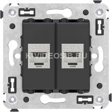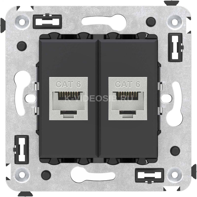 ДКС 4412794 Компьютерная розетка RJ-45 без шторки в стену, кат.6 двойная экранированная, Avanti, черный матовый