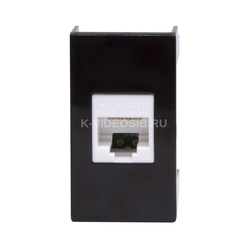 Компьютерная розетка. Назначение: подсоединение кабеля к компьютеру, принтеру и прочей оргтехнике. Характеристики: 8Р8С; комплектуются одномодульным гнездом; для заделки контактов в розетки использовать инструмент типа 110. RJ-45. Категория: 5е. Тип гнезда: Keystone. Производитель гнезда: Hyperline. Установочный размер: 45х25. Кол-во модулей: 1. Цвет: черный