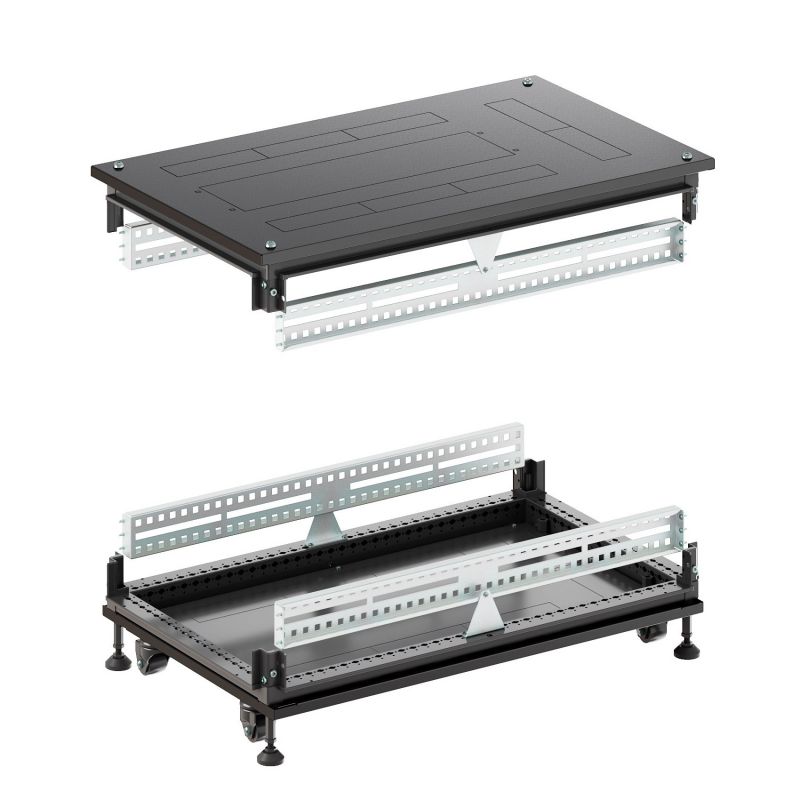 Базовый комплект из крыши и основания с преперфорацией, предустановленными опорами, роликами и линейными направляющими применяется для сборки 19" IT CQE. Отдельно приобретается вертикальный комплект необходимой высоты, двери и боковые панели. Полимерно-порошковая технология окрашивания обеспечивает прочное лакокрасочное покрытие, устойчивое к сколам и царапинам. Комплект поставки: дно, крыша, монтажные аксессуары, инструкция по QR-коду на коробке. Габариты крыши и основания: 600х1200 мм. Цвет - чёрный, RAL 9005.