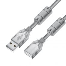GCR Удлинитель PROF 5.0m USB 2.0 AM/AF для энергоемких устройств, феррит. кольца, прозрачный, 28/24 AWG, экран, армированный, морозостойкий GCR-51128 предназначен для увеличения длины основного кабеля при подключении различных периферийных устройств, имеющих разъем USB типа А, таких как флешки, мыши, веб-камеры, XLR микрофоны, цифровое оборудование и др.