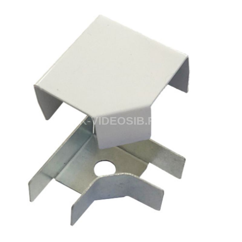 Соединитель ККМО Угол 25 L-образный металлический. Аксессуар для прокладки кабеля в металлическом кабель-канале, кроме декоративной функции служат дополнительным фиксирующим элементом при прокладке кабеля.