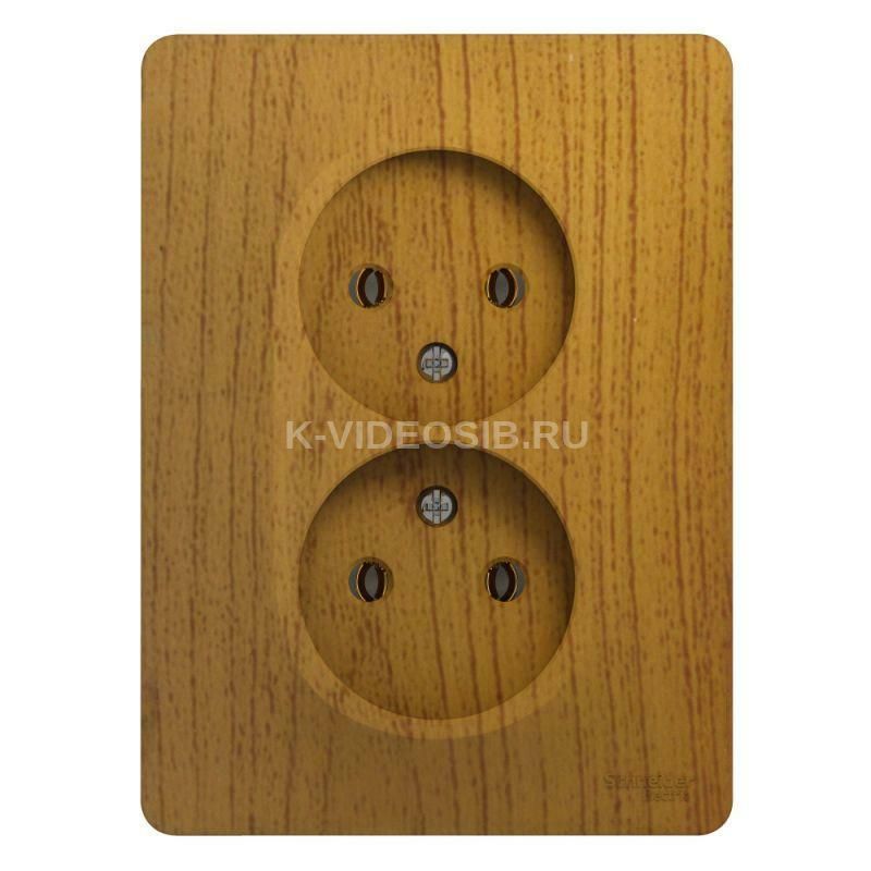 GLOSSA розетка двойная без заземления,16А, в сборе, дерево дуб GSL000520