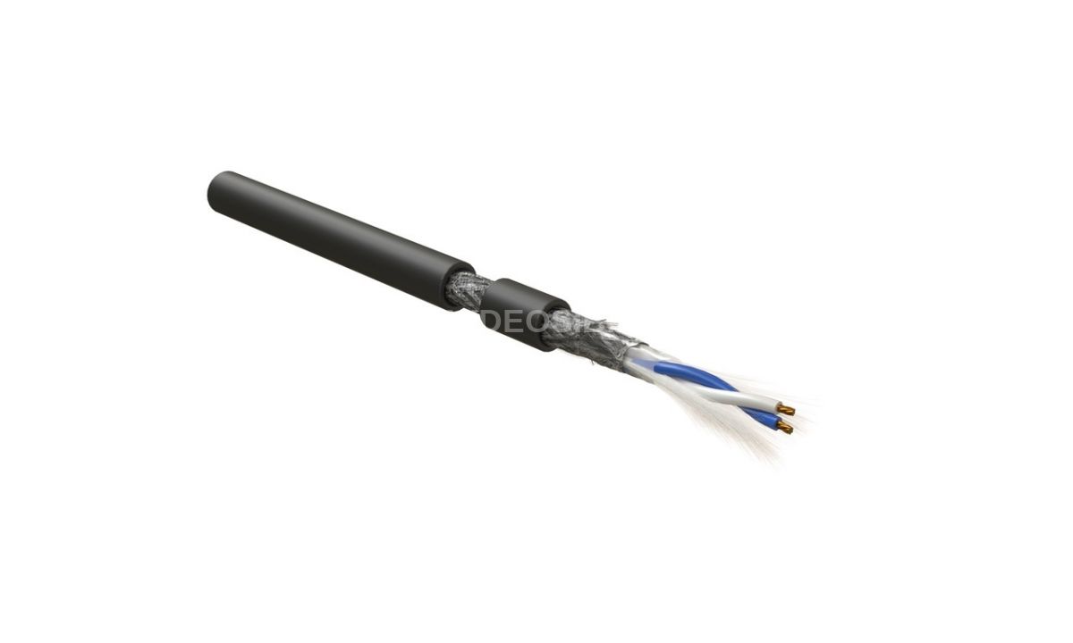 Hyperline RS-SF-1x2x24/7-PVC-BK-500 — экранированный кабель интерфейса RS-485 типа SF/UTP с двойным экраном (фольга и оплётка 85%), содержит 1 пару многопроволочных лужёных медных жил 24 AWG (7×0,203 мм), сечение 0,22 мм², изоляция из вспененного полиэтилена, чёрная PVC-оболочка, диаметр 7 мм, температурный диапазон эксплуатации -20°C…+70°C, предназначен для промышленной автоматизации и систем управления, подходит для внутренней и внешней прокладки, длина поставки 500 м, обеспечивает надёжную передачу данных в условиях промышленных помех.